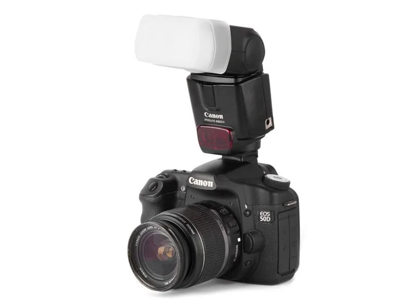 Головка вспышки Speedlite 320EX поднимается на 90 градусов, поворачивается влево и вправо, позволяя вспышке отражаться от потолка и стен, создавая более мягкое освещение без теней. Угол освечивания может быть изменен с помощью зума, чтобы соответствовать углу зрения объектива 24 мм или 50 мм.