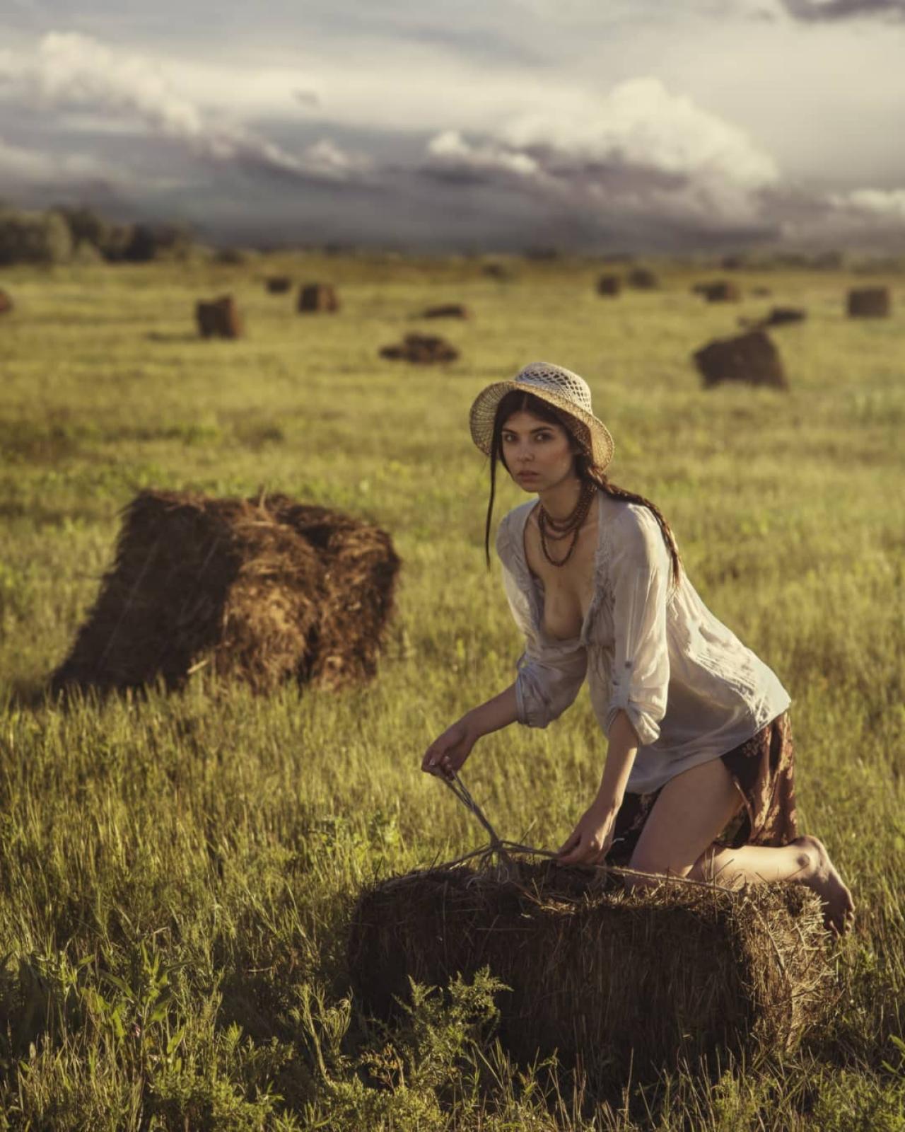 Ха-ха! Так далеко в лес не заходили. Но вместо кабанов обычно появляются люди. В самый неподходящий момент. В позапрошлом году я купил пленку Kodak, взял старый радиоприемник, блузку с огромным вырезом и стал снимать красивую девушку. Подальше от людей. В общем, она нежится на закате на пляже, ест дыньку, слушает приемник. И тут смотрю — рядом мужчина приземлился, потом второй, улыбаются, снимают на телефоны. Но я же не буду их прогонять! Если модели комфортно, то мне это не мешает.