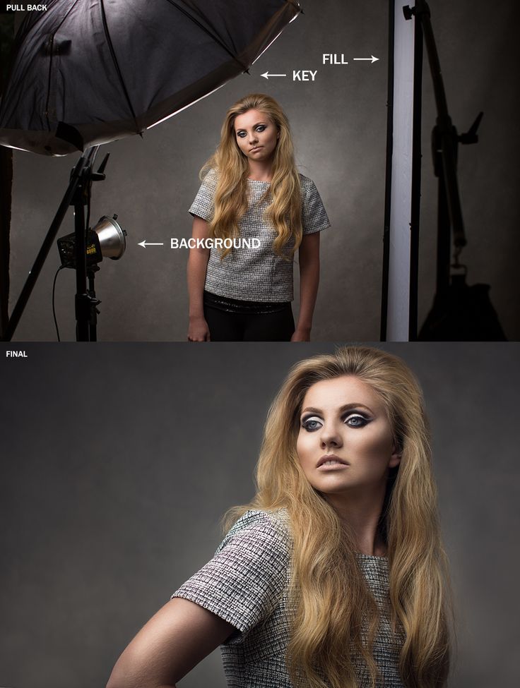 Просто помните: чем больше разница между ключевым и заполняющим светом, тем выше контраст. Поэтому, если вы хотите меньше контраста, установите заполняющий свет на один-два стопа ниже ключевого. Если вы хотите больше контраста, сделайте три-четыре ступени.
