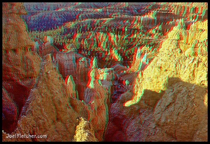 Стереоскопическое изображение, состоящее из двух изображений одного и того же объекта, снятых под немного разными углами, в двух дополнительных цветах, обычно красном и голубом (зелено-синем). Если смотреть через очки с одной красной и одной голубой линзой, изображения сливаются, создавая стереоскопическое ощущение — простое для чтения и, как вы увидите, простое в создании и довольно великолепное на вид.