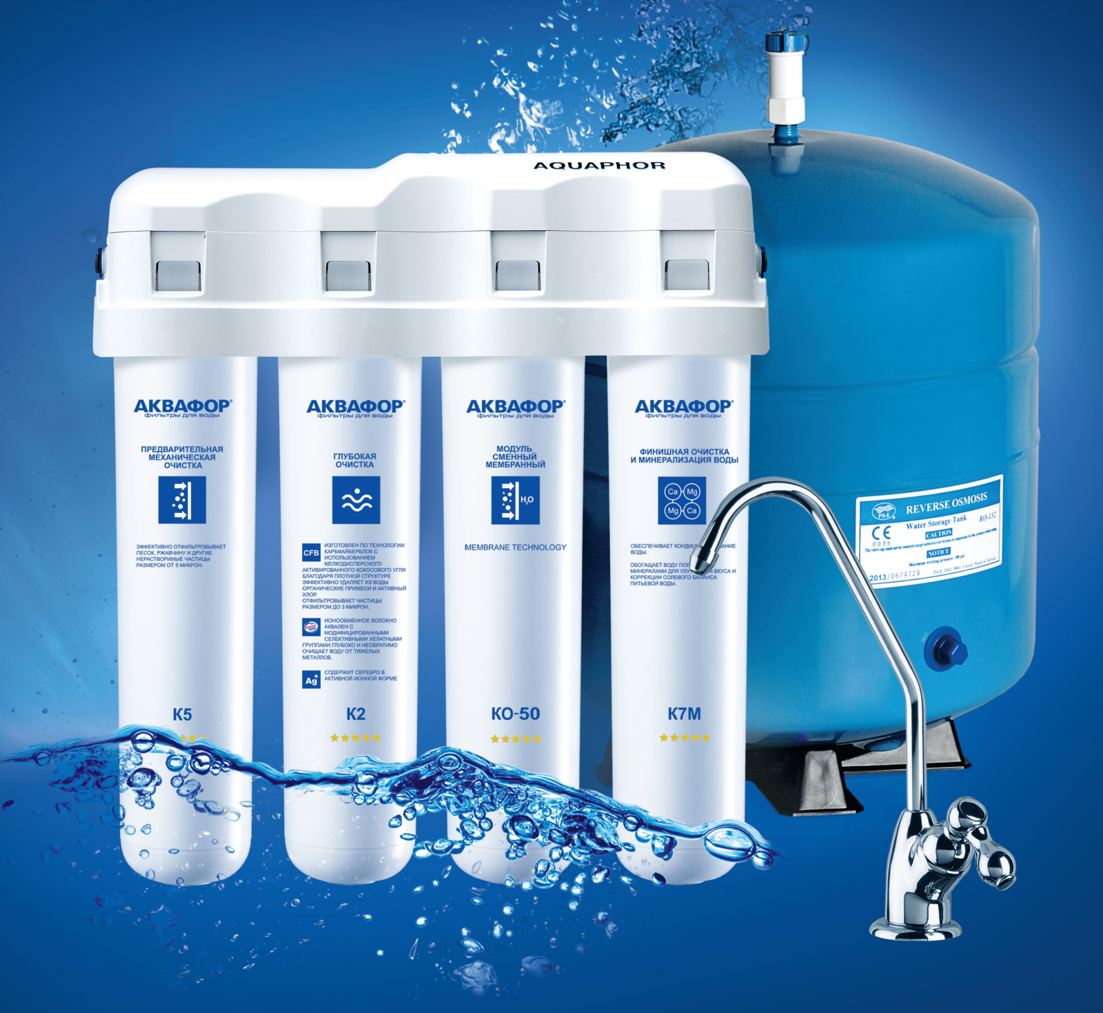 К высокой степени очистки относится очистка обратноосмотическими бытовыми фильтрами.