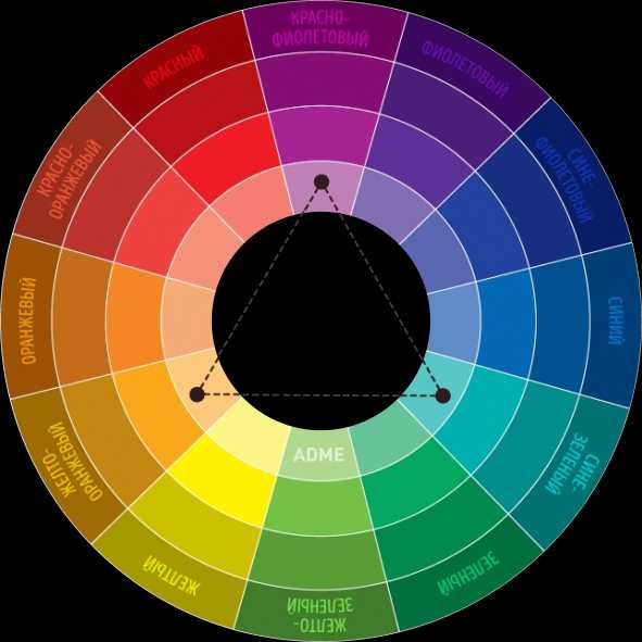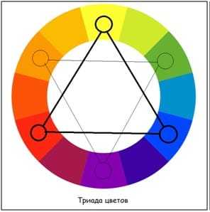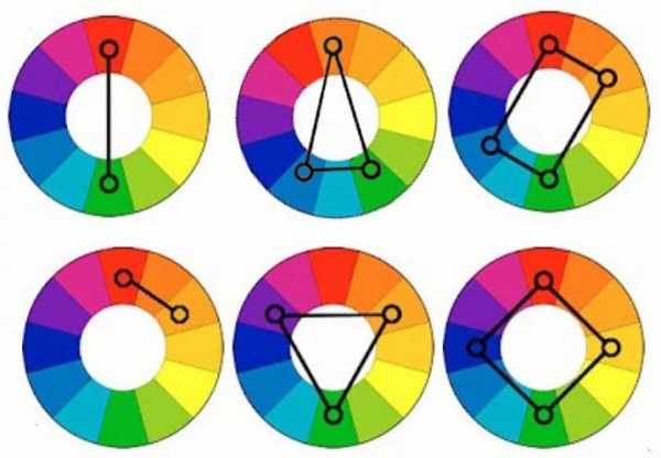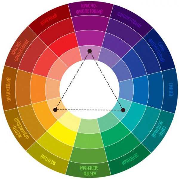 Определить правильное сочетание цветов поможет треугольник. С ним легко выделить несколько выигрышных комбинаций.