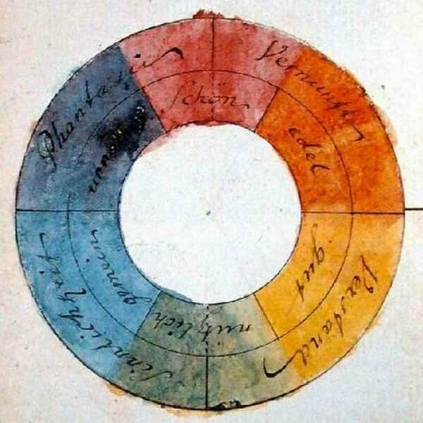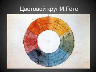 Поэт, мыслитель Гете тоже имел свой взгляд на построение цветового круга. Он отмечал существование так называемых «чистых тонов», которые нельзя получить путем смешивания красок. В круге Гете эти цвета чередуются с дополнительными (оранжевый, фиолетовый, зеленый), которые получены путем попарного соединения основных. Несмотря на то, что кольцо Гете на этом замыкается, он тоже отмечал получение всех остальных оттенков при комбинировании предыдущих.