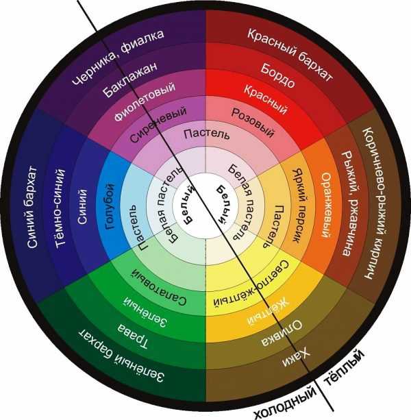 Существуют разные виды цветовых кругов, различающиеся количеством присутствующих в них секторов. Любой круг включает теплую и холодную зоны, что можно заметить визуально: красный, оранжевый, желтый относятся к первой зоне, синий, голубой, зеленый – ко второй.