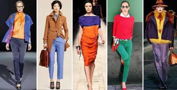 Не менее привлекательно будет смотреться сочетание отличных друг от друга цветов, которые контрастируют друг с другом в цветовом круге. Возьмите оранжевый и соедините его с синим, получится красивый цветовой контраст. Красный на фоне зеленого также будет смотреться привлекательно. Но для того, чтобы цвет одежды не кричал, не пестрил слишком, лучше всего взять какой-то цвет за основу и добавить к нему немного контрастного.