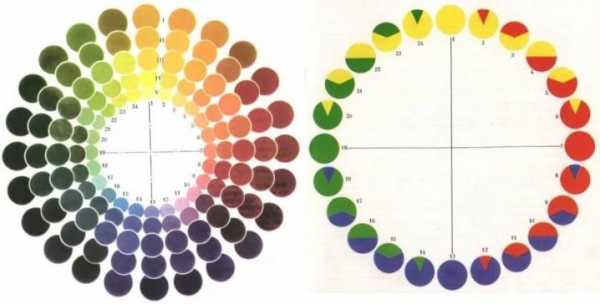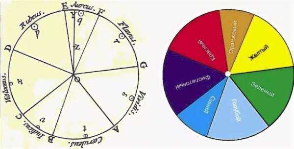 Цветовая система Ньютона из семи секторов: красного, оранжевого, желтого, зеленого, голубого, синего и фиолетового.к содержанию ↑Круг Иттена и цветовые гармонии — как пользоваться