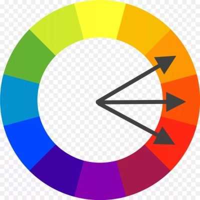 Модель аналогичных цветов. Эта цветовая схема образована основным цветом и его смежными цветами — два цвета, расположенные тождественно по обе стороны. Это всегда смотрится элегантно и четко, цветовая гамма в результате этого выглядит с меньшей напряженностью и равномерной колориметрией. Если выбран цвет на тепло-холодной границе, цвет с противоположной «температурой» может быть использован для акцентирования двух других цветов.Вы можете задать дистанцию смежных (вторичных) цветов, угол не должен превышать 60°.