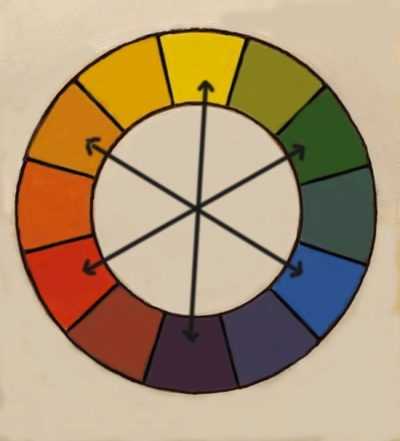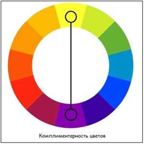 Здесь все просто: если посмотрите на цветовую схему, увидите тона, которые находятся на противоположных сторонах (например, желтый и фиолетовый, как на картинке). Такие тона дают контрастное, но красивое сочетание.