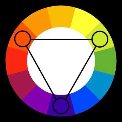 Чтобы создать классическую трехцветную схему – триаду вы можете использовать равнобедренный, равносторонний треугольник. Вы должны выделить три равноудаленных цвета из круга, которые гармонируют между собой, чтобы создать треугольную геометрическую фигуру.