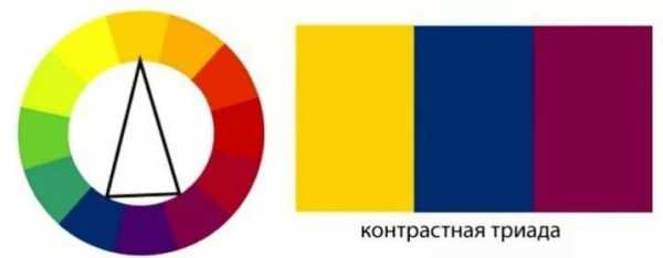 Контрастное или комплиментарное сочетаниек содержанию ↑Классическая триада – сочетание 3 цветов