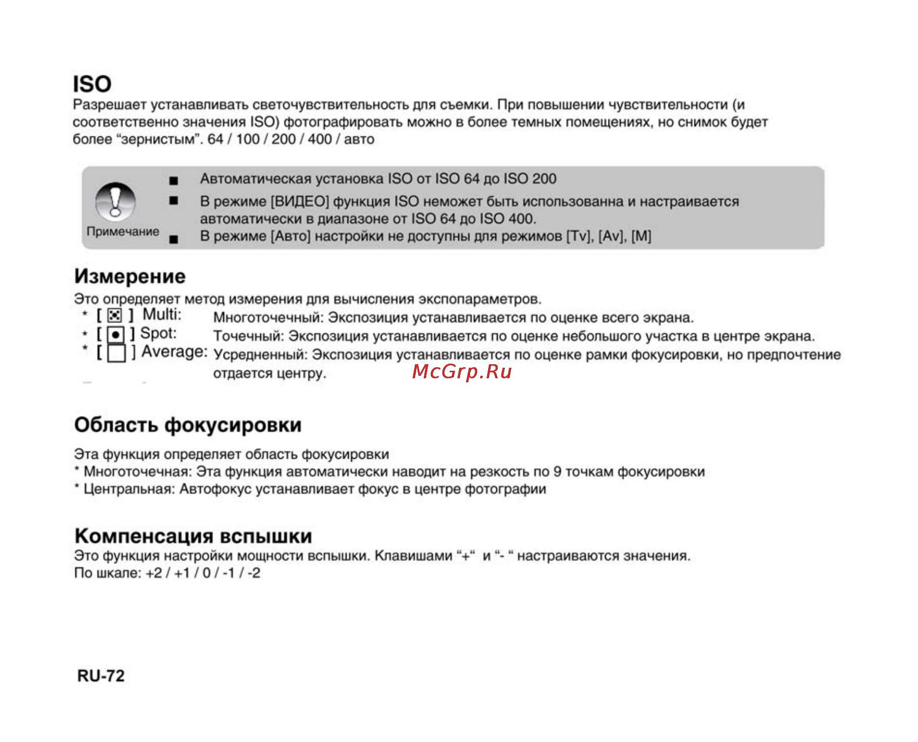 - Перейти к Меню / Запись (5) / Шаг ISO