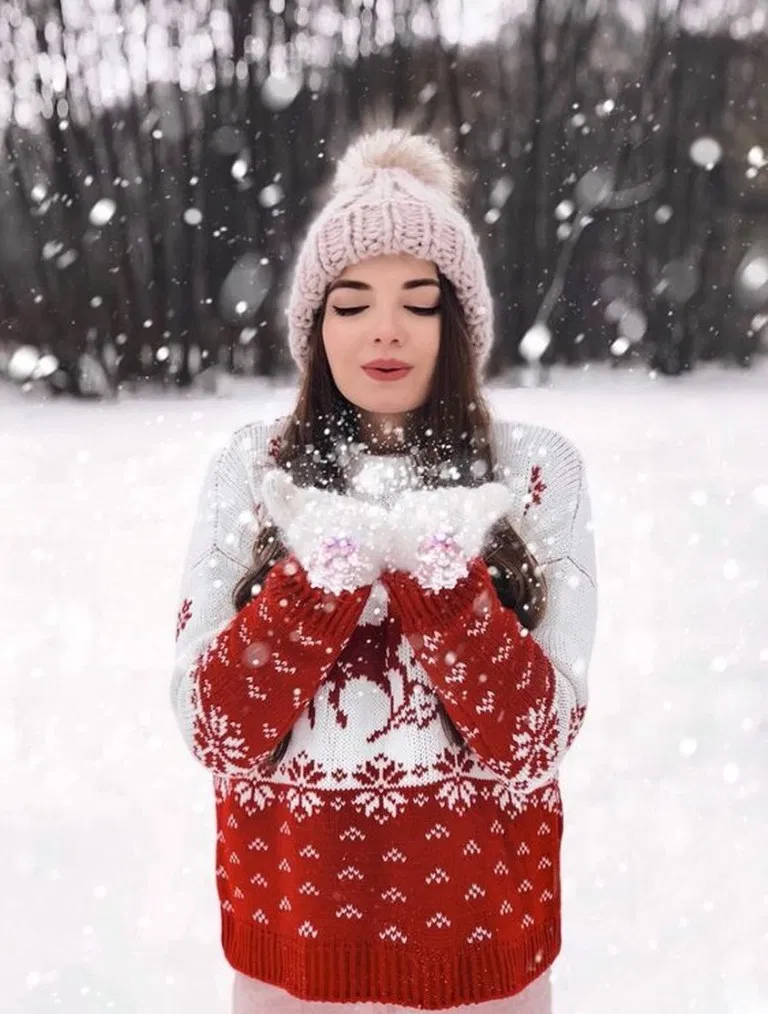 Для этого уделите огромное внимание вашему макияжу. Вы его можете сделать и в естественном, и броском виде, но главное он должен быть со стойкостью, так как могут проявиться контакты со снегом, который растает. Фотографии в профиль с ладонями, которые вы можете поднести к лицу, на которые будут опускаться снежинки, будут смотреться очень красиво. Успешный портрет вы можете сделать, если девушка в объектив будет смотреть через плечо или будет сдувать с перчаток снег. Будет прекрасно, если денек выдастся солнечным, и лучики его будут подсвечивать лицо девушки.