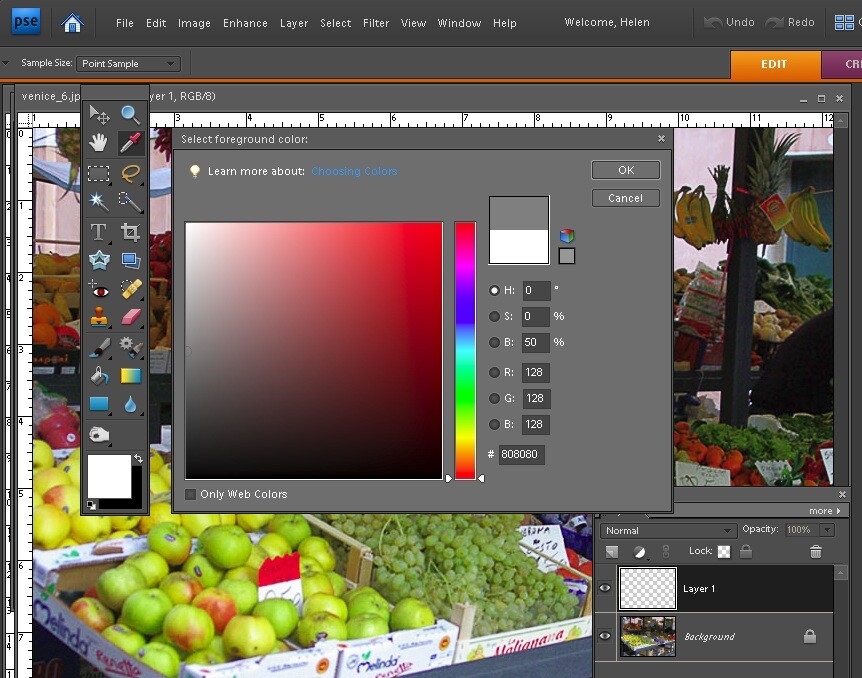 На панели инструментов слева щелкните инструмент выбора цвета переднего плана.
