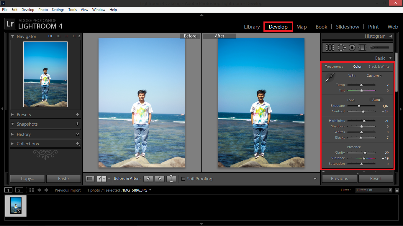 Использование пресетов в модуле обработкиНаиболее распространенный способ использования предустановок Lightroom – модуль обработка.