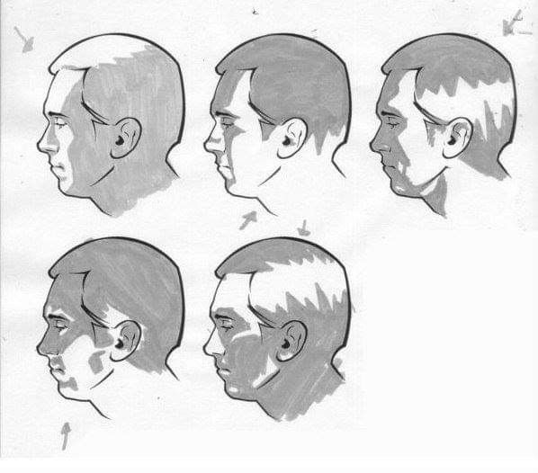 Совет: Не забудьте перерисовать волосы, которые исчезли после того, как вы заштриховали лоб.