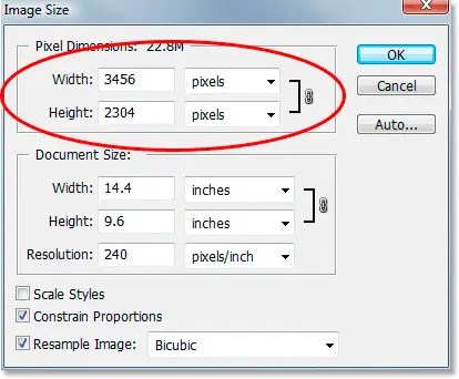 Обратите внимание, что теперь у нас также есть третье поле, и это третье поле предназначено для значения Resolution . Поскольку я хочу, чтобы изображение печаталось с наивысшим качеством, я введу стандартное для отрасли разрешение 300 пикселей/дюйм :