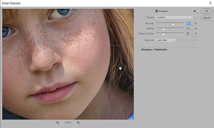 Но не всегда нужны столь хитрые и долгие манипуляции в борьбе за четкость, иногда вполне достаточно просто использовать отдельные фильтры. Группа фильтров, предназначенных для повышения резкости изображения, содержится в меню Sharpen (Резкость). Кроме фильтра Unsharp Mask (Контурная резкость), с которым мы уже сталкивались, и новинки Photoshop CS2 — фильтра Smart Sharpen («Умная» резкость) в данной группе находятся следующие фильтры-ветераны: