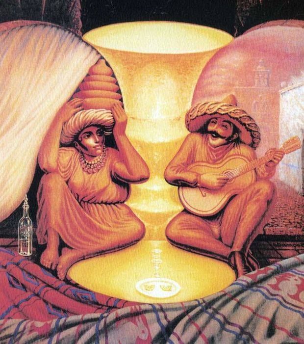 Что касается оптических иллюзий, то эта и проста, и болезненна. Кто думал, что двух пар глаз и двух ртов будет достаточно, чтобы сломать ваш мозг и заставить вас сфокусироваться?