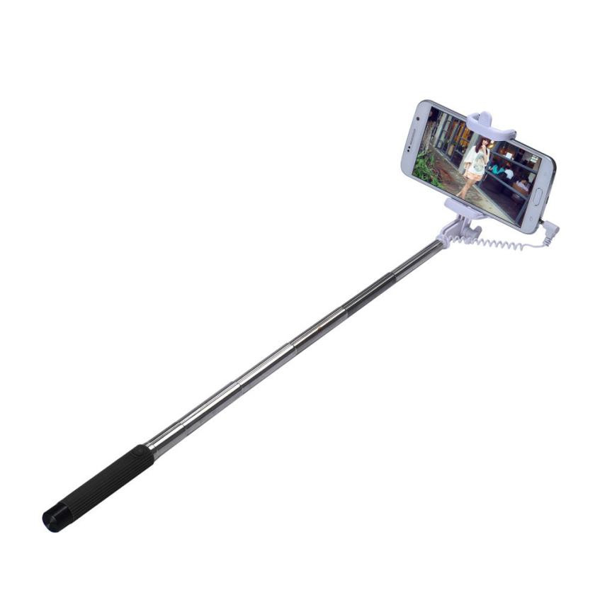 Она работает на основе телескопической системы – когда разные по диаметру трубки выдвигаются одна из другой и после фиксации делают держатель в несколько раз длиннее, чем обычно. Это необходимо для того, что обеспечить больший угол захвата (снять компанию или красивый пейзаж за спиной), а также полезно на увеселительных мероприятиях (хочется записать выступление любимой группы, но из-за голов других зрителей ничего не видно).