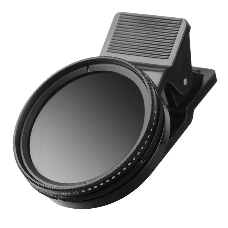 Переменные фильтры нейтральной плотности представляют собой два поляризатора, расположенных вместе, одна плоскость которых предотвращает попадание фиксированного количества света, а другая вращается, чтобы предотвратить попадание в камеру возрастающего количества света.