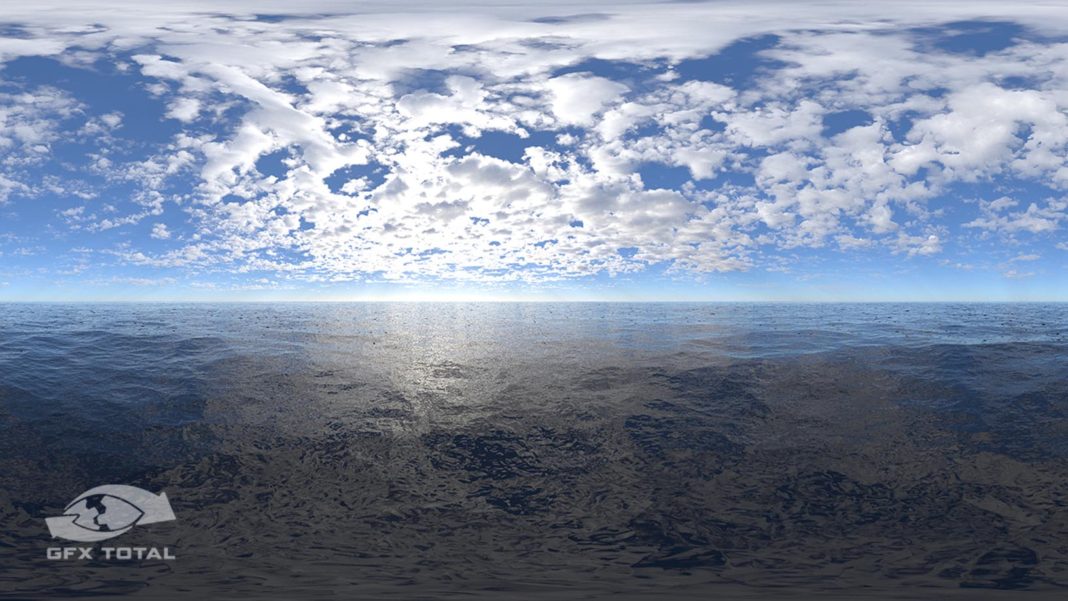 В этой панораме видно, что погода облачная, границы облаков у зенита нечеткие. Под такую панораму хорошо подойдет небо 03 с папки “Облачность”.