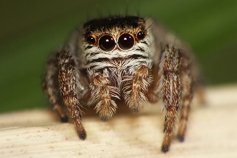 Но что общего у пауков-скакунов, так это их впечатляющее зрение. У этих паукообразных всегда есть четыре пары глаз, в том числе большая основная пара, обращенная вперед, из-за чего пауки выглядят довольно кукольными и милыми. Эти большие глаза выделяют пауков-скакунов среди пауков.