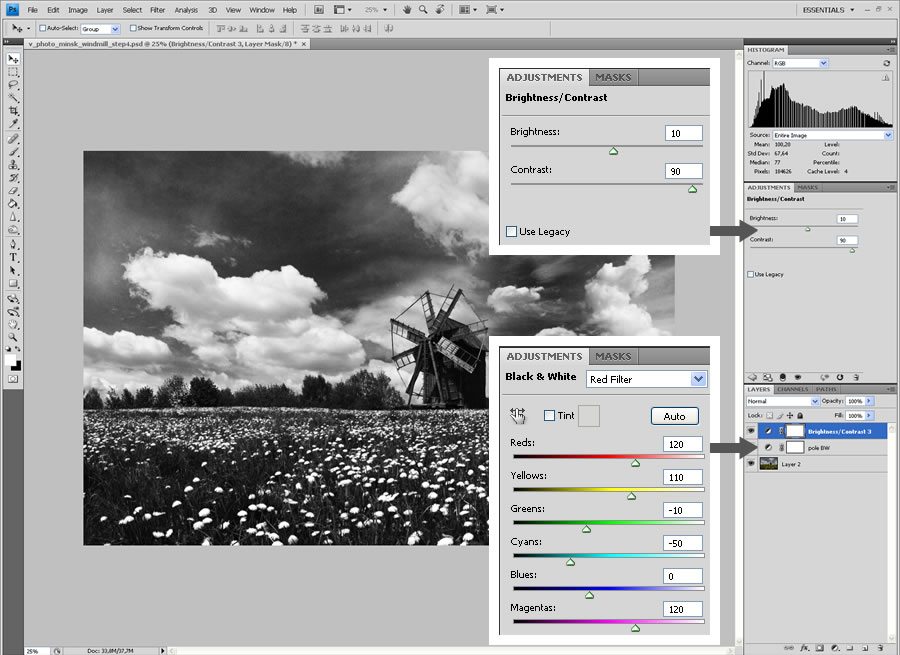 Если вы чувствуете, что изображение в градациях серого становится размытым после добавления черно-белого фильтра, попробуйте увеличить его контрастность.