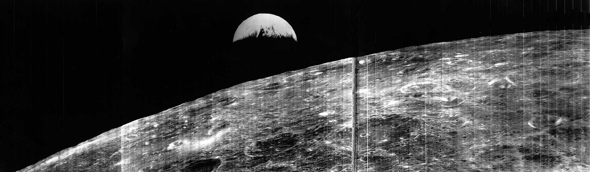 Земля «поднимается» над Луной на известном снимке, сделанном Lunar Orbiter 1.