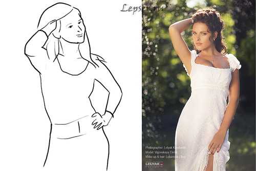 22. Удачная поза для фотосессии и отличный ракурс, с которого модель кажется стройнее. Модель стоит боком, подбородок немного опущен вниз, а плечо слегка приподнято. Обратите внимание, что между подбородком и плечом должно оставаться небольшое расстояние.