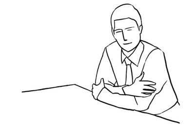 Самый простой вариант изобразить расслабленного мужчину – сидя в свободной позе с руками, свободно лежащими на коленях.Рассказать друзьям: