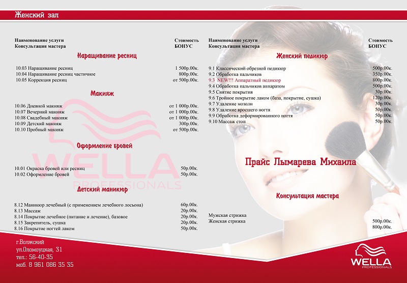 Цены на услуги — Фотосалон А4