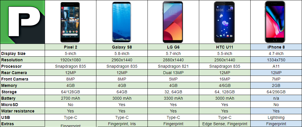 Apple iPhone 8 чаще всего сравнивают со следующими телефонами: