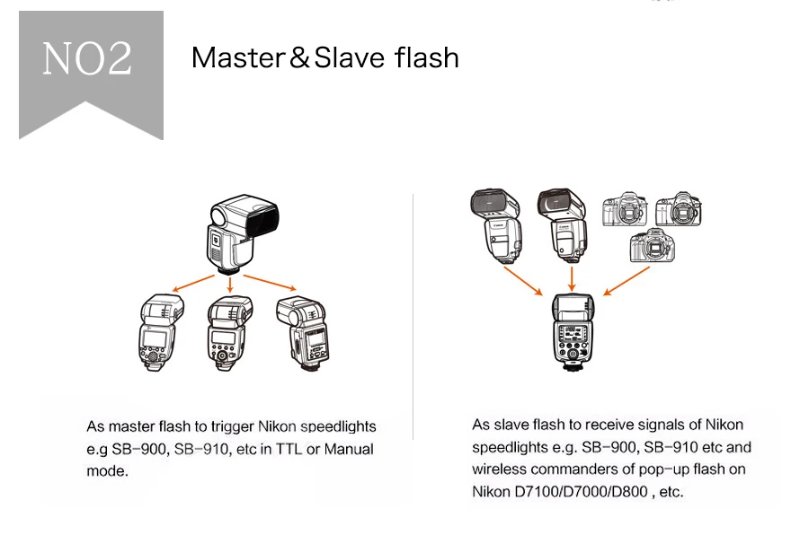 Угол освещения вспышки регулируется в соответствии с фокусным расстоянием объектива от 20 мм до 200 мм автоматически или вручную, чтобы эффективно распределить световой поток и избежать затемнения периферийных областей кадра. Независимо от того, снимает ли фотограф широкоугольным объективом в условиях ограниченного пространства или портретным объективом издалека, вспышка будет естественным образом освещать объект целиком.