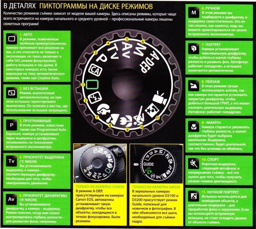Если вы возьмете современную цифровую фотокамеру, то вы наверняка увидите колесико, где видны различные режимы съемки. Но что это за режимы и как ими пользоваться?