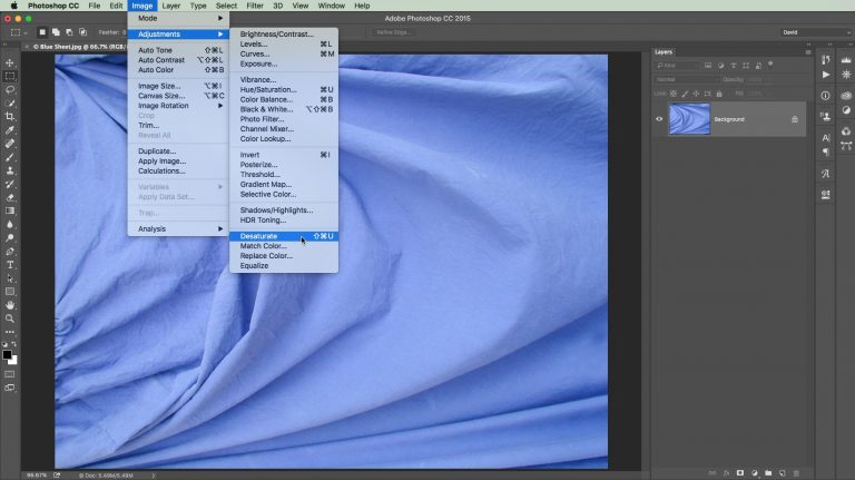 - Ваша фотография должна быть фоном . Если это не так, перейдите в Layer> New> Background from Layer .