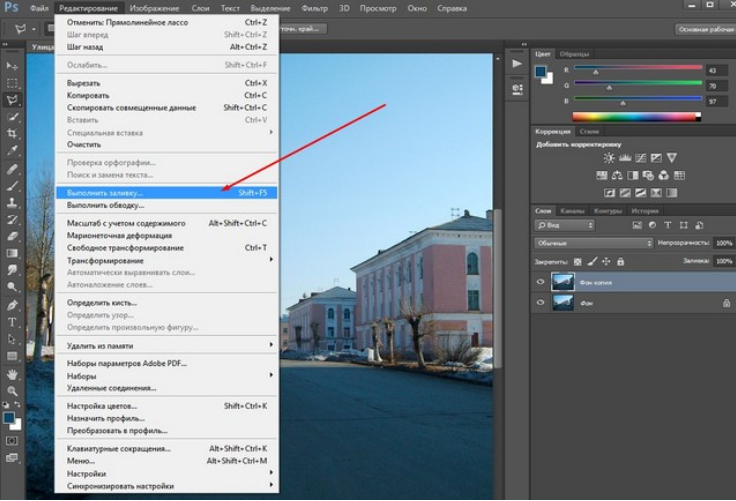 Это самый простой вариант, как убрать надпись в Фотошопе с картинки. Он сработает, если текст расположен на относительно однородном, не детализованном фоне. У него не должно быть резких переходов между тонами. Небо, размытый лес, стена – надписи с подобными «задниками» легко удаляются при помощи заливки.