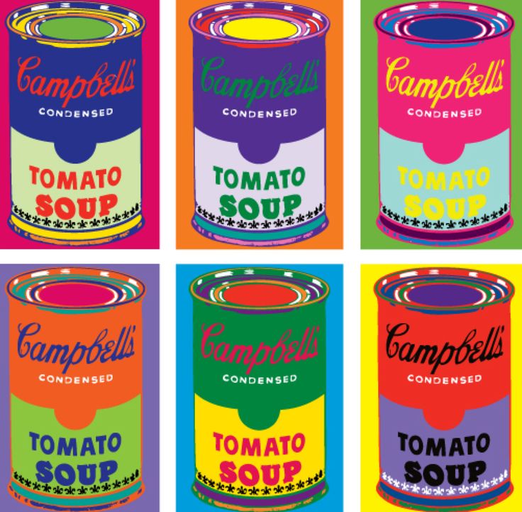Впервые выставленная в 1962 году в галерее Ферус в Лос-Анджелесе, Банки с супом Кэмпбелл Уорхола является одной из самых известных серий Уорхола. Идеальная визуализация потребительской культуры и массового производства, 9 Уорхола.0022 Банки супа Кэмпбелла предположительно были вдохновлены его собственным потреблением банки томатного супа Кэмпбелл каждый день на обед в течение 20 лет.