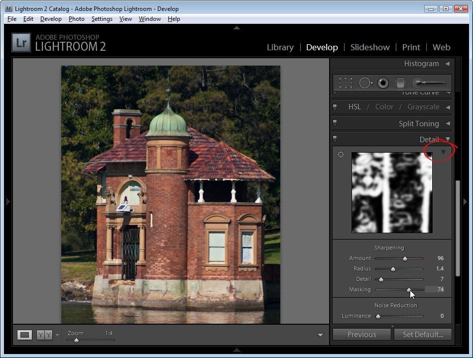 Слайдер Masking позволяет нам применить увеличение резкости только к тем областям, где есть какие-либо детали. Удерживая клавишу Alt, перемещайте ползунок. Изображение будет отображаться черно-белой картинкой. Чем правее вы перетаскиваете ползунок, тем больше областей становится черными, это означает, что к этим областям увеличение резкости применяться не будет. Для данного изображения мы выбрали значение 40, чтобы оставить нетронутым размытый изначально фон.