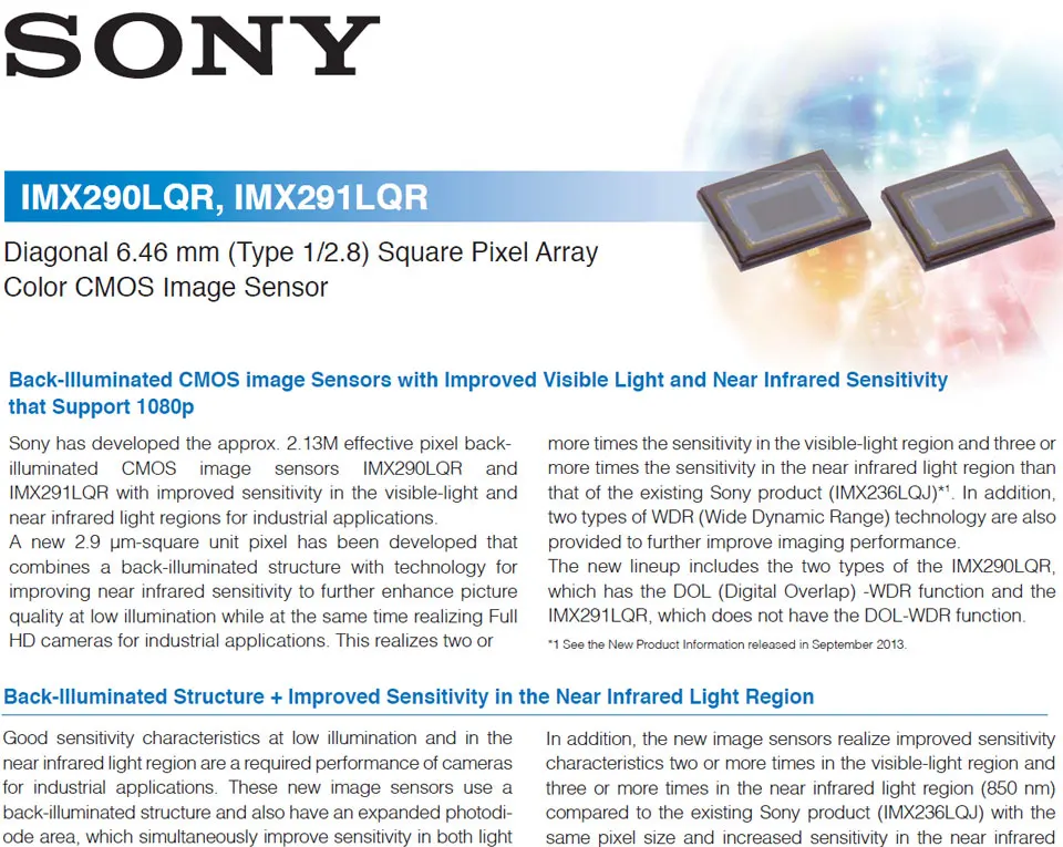 Светочувствительность сенсоров изображения выпускаемых Sony, обозначена в новом индексе SNR-1s рекомендуемым производителем Sony, для оценки выпускаемых Sony сенсоров изображения целенаправленно для приложений безопасности видеонаблюдения и распространяется только на технологию CMOS Sony CCTV, сенсоры изображения.