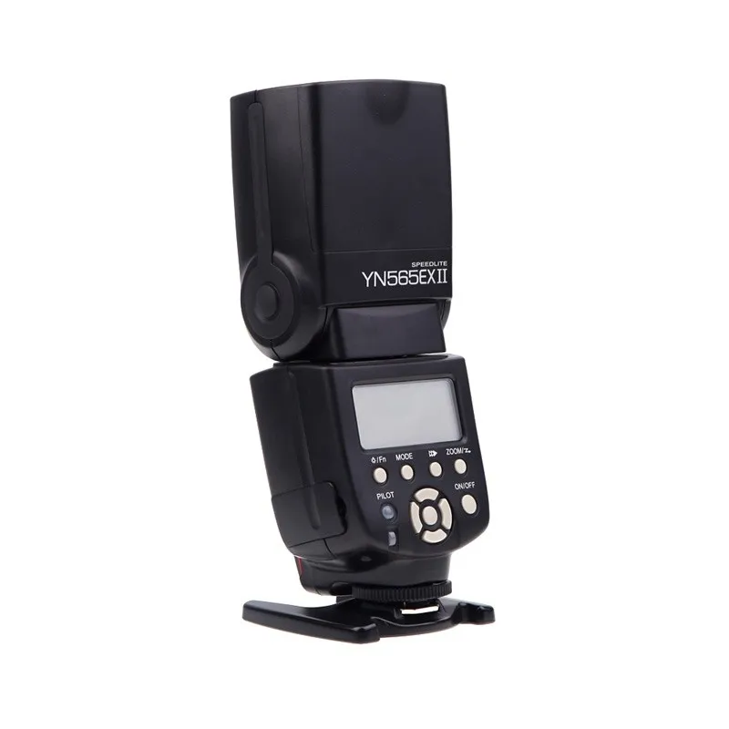 Yongnuo YN565EX II — мощная вспышка, совместимая со всеми камерами Canon с управлением e-TTL (II). Он имеет мощное ведущее число 58 м при ISO 100 и 105 мм для освещения вашего объекта, а также зум-головку с охватом от 24 до 105 мм. Кроме того, вспышка может наклоняться от -7 до 90° и поворачиваться на 270° для универсальности при отражении света.